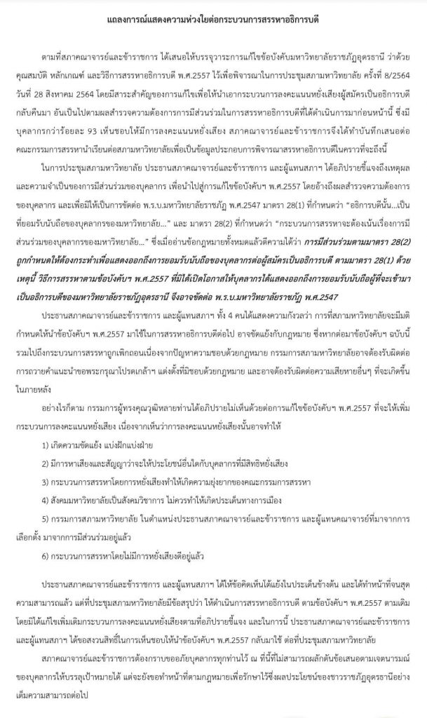 📣📣แถลงการณ์แสดงความห่วงใยต่อกระบวนการสรรหาอธิการบดี