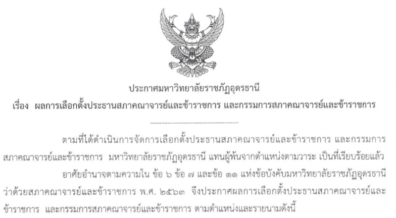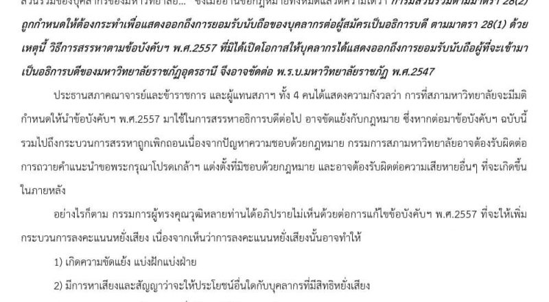 แถลงการณ์แสดงความห่วงใยต่อกระบวนการสรรหาอธิการบดีโดย ประธานสภาคณาจารย์และข้าราชการมหาวิทยาลัยราชภัฏอุดรธานี