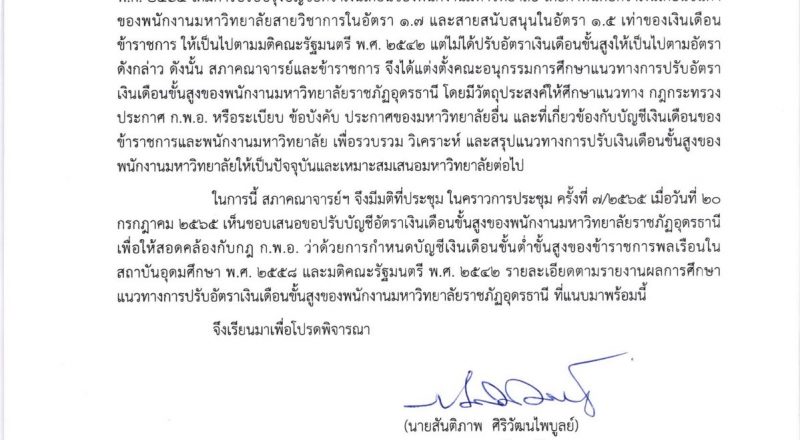 ขอปรับบัญชีเงินเดือนขั้นสูงของพนักงานมหาวิทยาลัยราชภัฏอุดรธานี