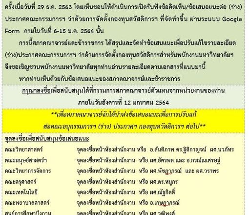 ขอเชิญ ร่วมสนับสนุนข้อเสนอแนะของสภาคณาจารย์ฯ ต่อร่างประกาศ กบม. ว่าด้วย การจัดตั …