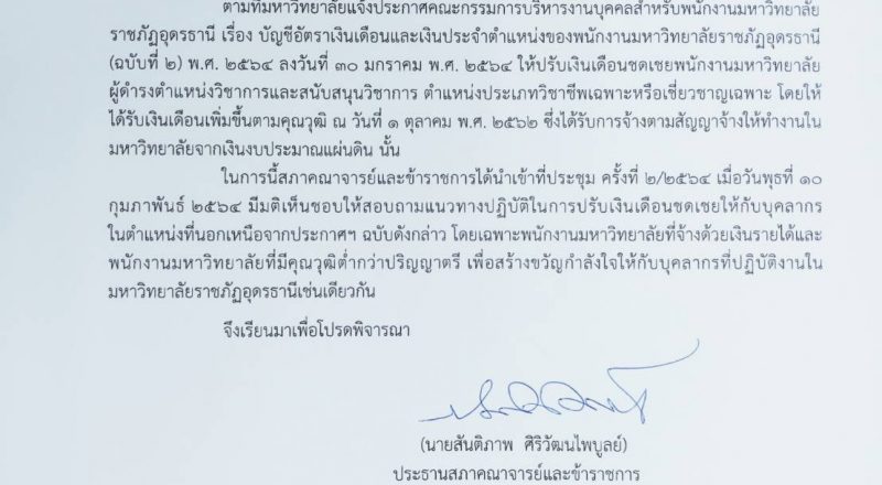 อ่านเพิ่มเติมประธานสภาคณาจารย์ฯ ได้บันทึกถึงประธานคณะกรรมการบริหารงานบุคคลสำหรับพนักงานมหาวิทยาลัยราชภัฏอุดรธานี (ก.บ.ม.)