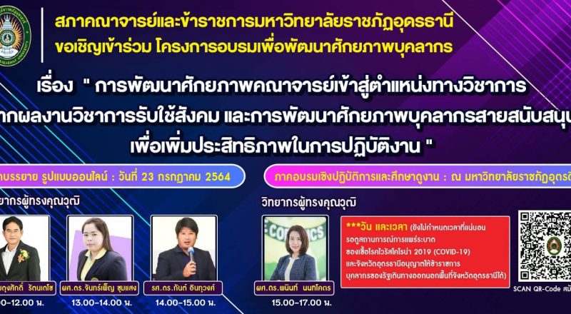 สภาคณาจารย์ขอเชิญบุคลากรมหาวิทยาลัยราชภัฏอุดรธานี เข้าร่วมโครงการอบรมเชิงปฏิบัติ …